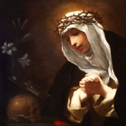 Youngest of 24 children; her father was a wool-dyer. At the age of seven she had a vision in which Jesus appeared with Peter, Paul, and John; Jesus blessed her, and she consecrated herself to Him. Her parents began making arranged marriages for her when she turned 12, but she refused to co-operate, became a Dominican tertiary at age 15, and spent her time working with the poor and sick, attracting others to work with her. Received a vision in which she was in a mystical marriage with Christ, and the Infant Christ presented her with a wedding ring. Some of her visions drove her to become more involved in public life. Counselor to and correspondent with Pope Gregory XI and Pope Urban VI. Stigmatist in 1375. Lived in Avignon, France in 1376, and then in Rome, Italy from 1378 until her death. Friend of Blessed Raymond of Capua who was also her confessor. Proclaimed Doctor of the Church on 4 October 1970.